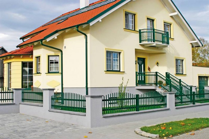 Dekoratív, légies, elegáns – a házat kiemeli a háttérböl, sokoldalúan felhasználható. A GLORIETTE alukerítésmodel mind modern mind régebbi épületekhez jól illik.