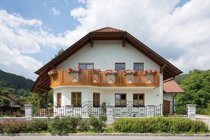 A Kitzbühel alumínium erkélykorlát előnye a variálhatóság. Minden sarok, él és görbület beépíthető vele.